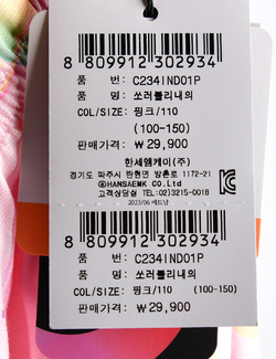 | 세탁방법 및 취급시 주의사항 | 본 세품은 손세탁 하십시오(케어라벨 참고) |