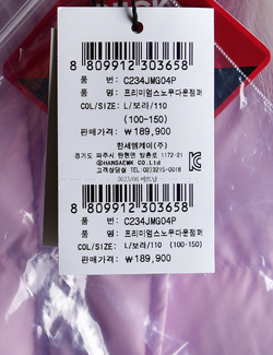 | 세탁방법 및 취급시 주의사항 | 본 세품은 손세탁 하십시오(케어라벨 참고) |