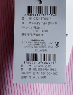 | 세탁방법 및 취급시 주의사항 | 본 세품은 손세탁 하십시오(케어라벨 참고) |