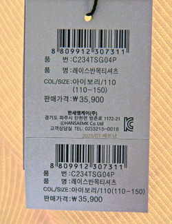 | 세탁방법 및 취급시 주의사항 | 본 세품은 손세탁 하십시오(케어라벨 참고) |