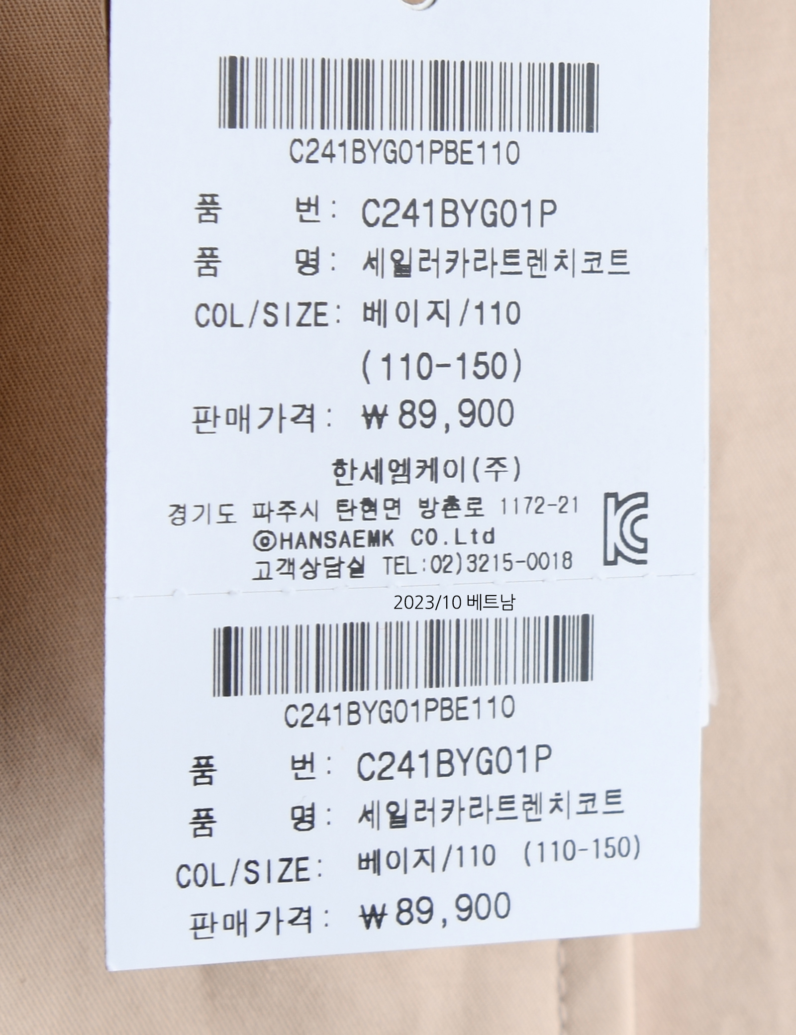 상품코드 C241BYG01P