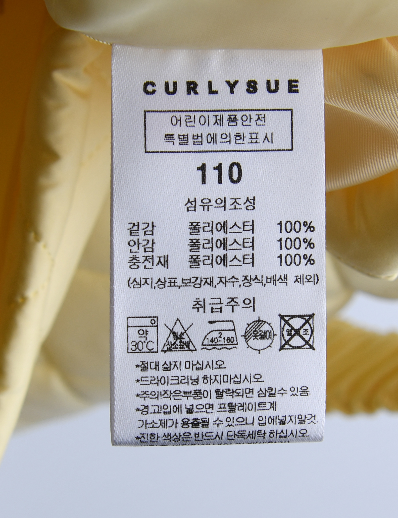 | 세탁방법 및 취급시 주의사항 | 본 세품은 손세탁 하십시오(케어라벨 참고) |