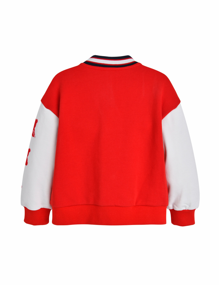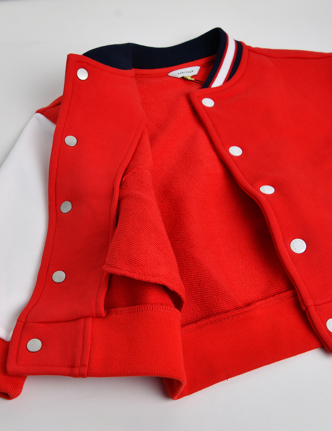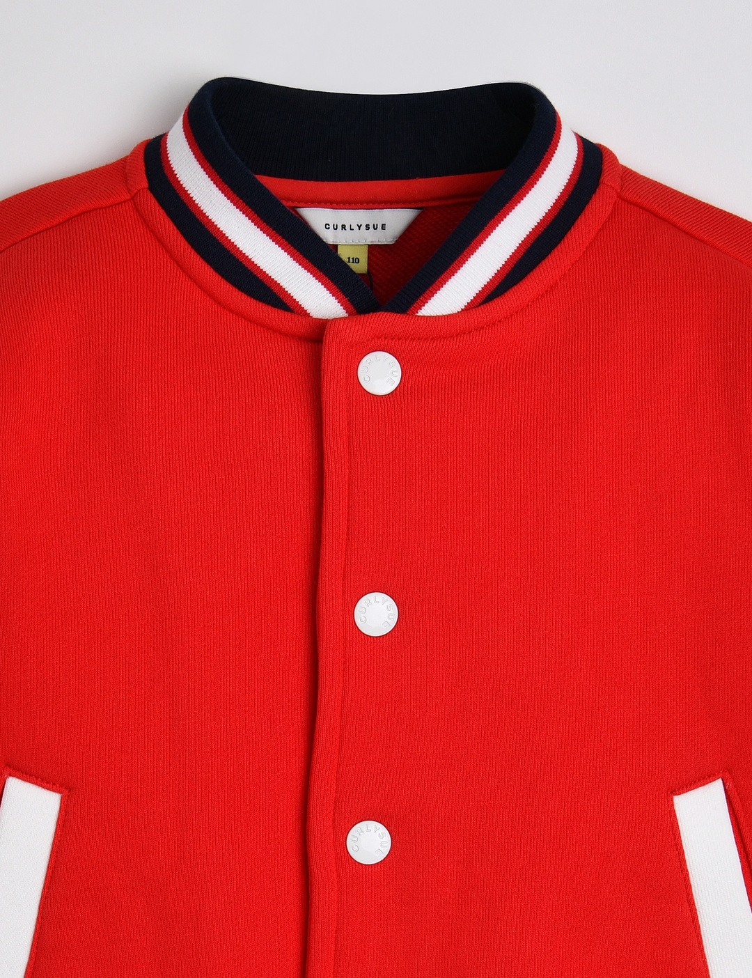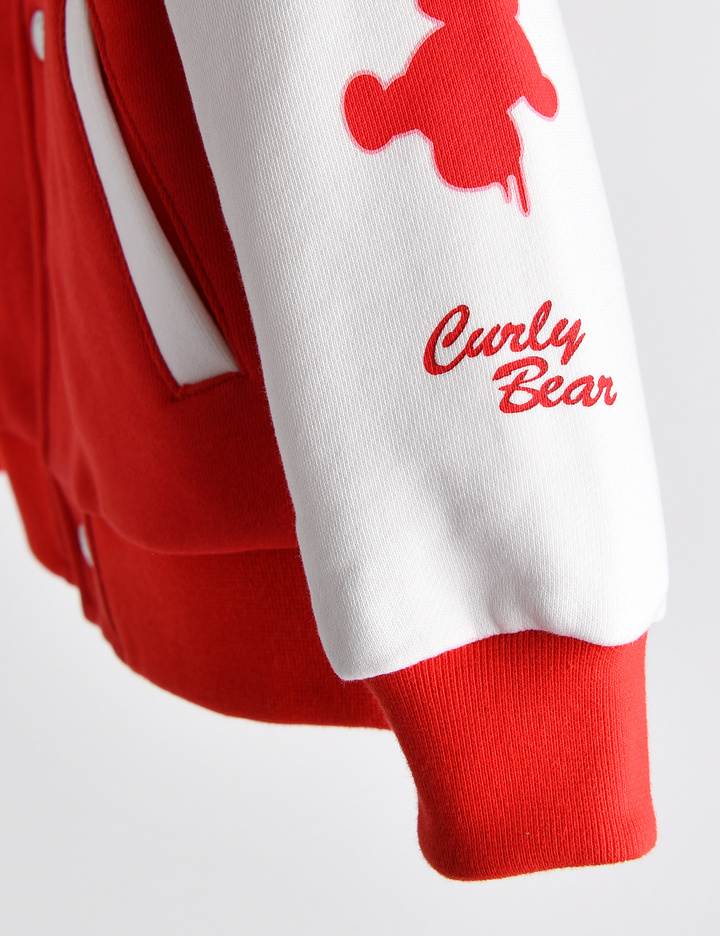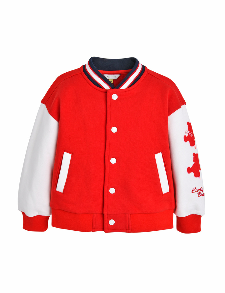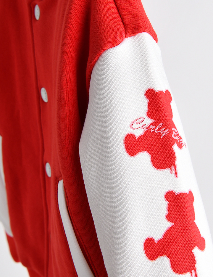 쭈리 소재를 사용한 바시티 점퍼입니다.신학기 룩으로 코디할 수 있는 아이템이며 톡톡 튀는 컬러감으로 세련됨이 돋보이는 캐주얼 점퍼입니다. 소매 곰돌이날염이 포인트입니다.