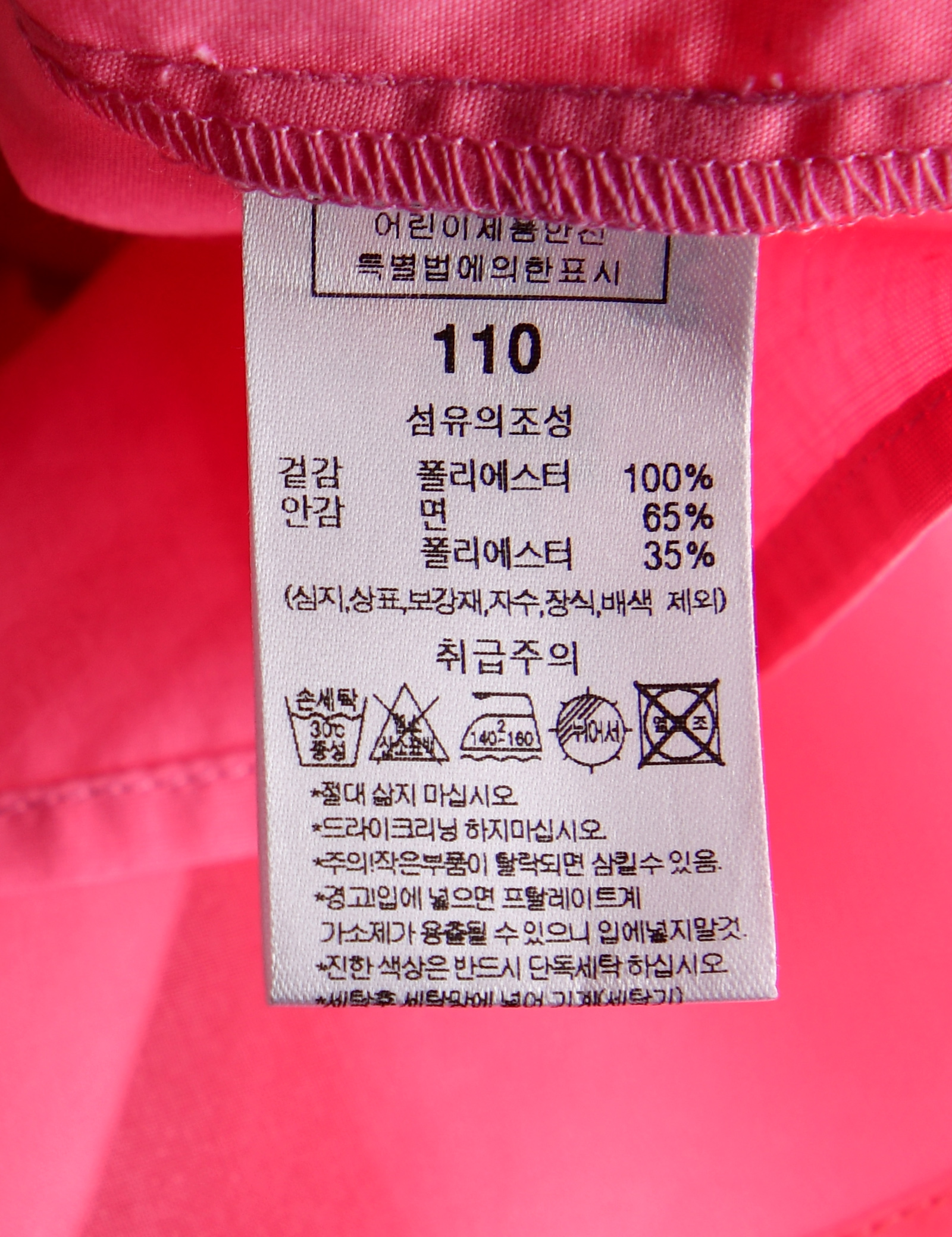 | 세탁방법 및 취급시 주의사항 | 본 세품은 손세탁 하십시오(케어라벨 참고) |
