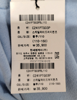 | 세탁방법 및 취급시 주의사항 | 본 세품은 손세탁 하십시오(케어라벨 참고) |