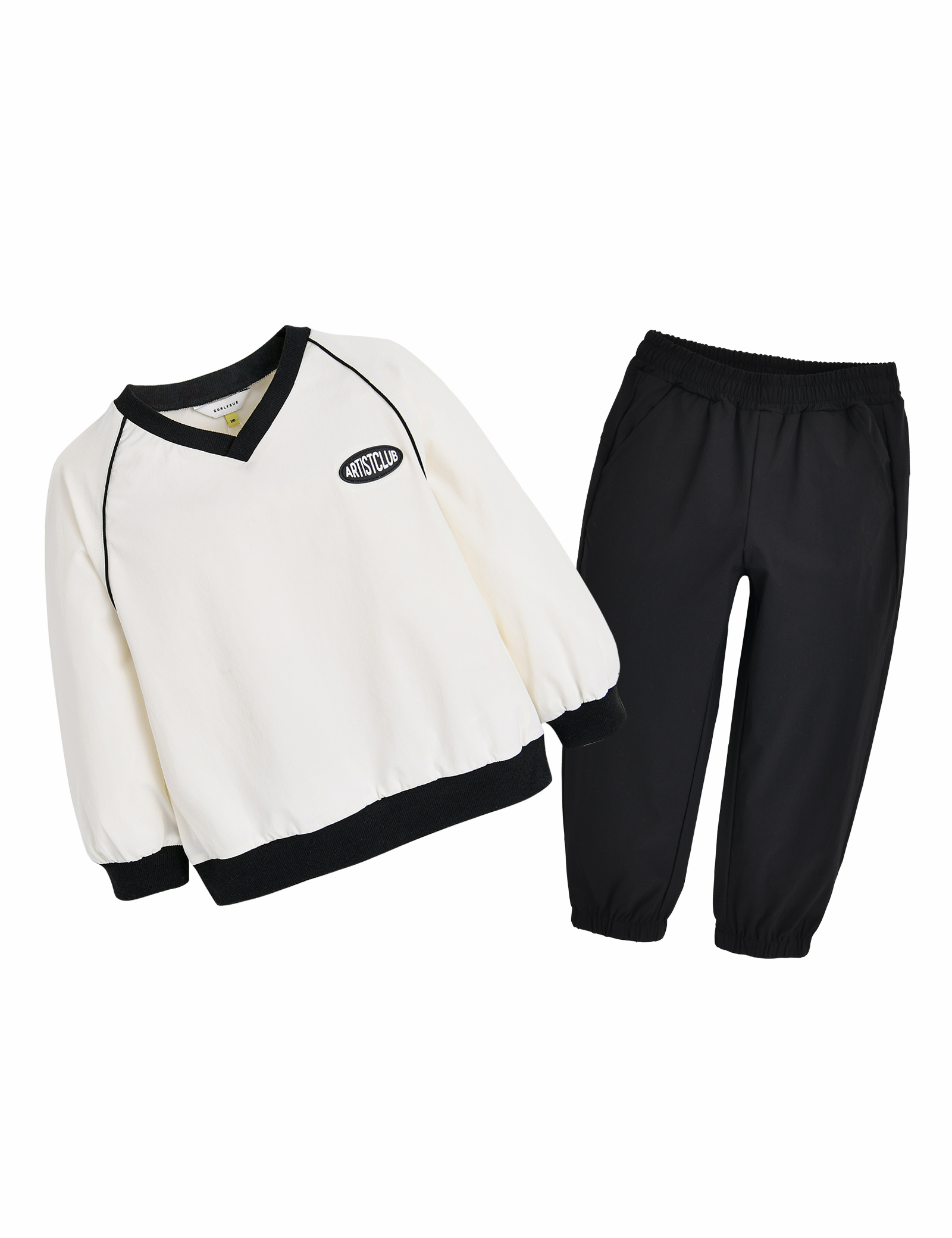 활동성이 좋은 나일론 스판 혼방 소재의상하 세트입니다. 립 원단과 파이핑에컬러 배색을 사용하여 트렌디한 무드의상품으로 레터링 고무 와펜이 힙한 무드를 더해줍니다.