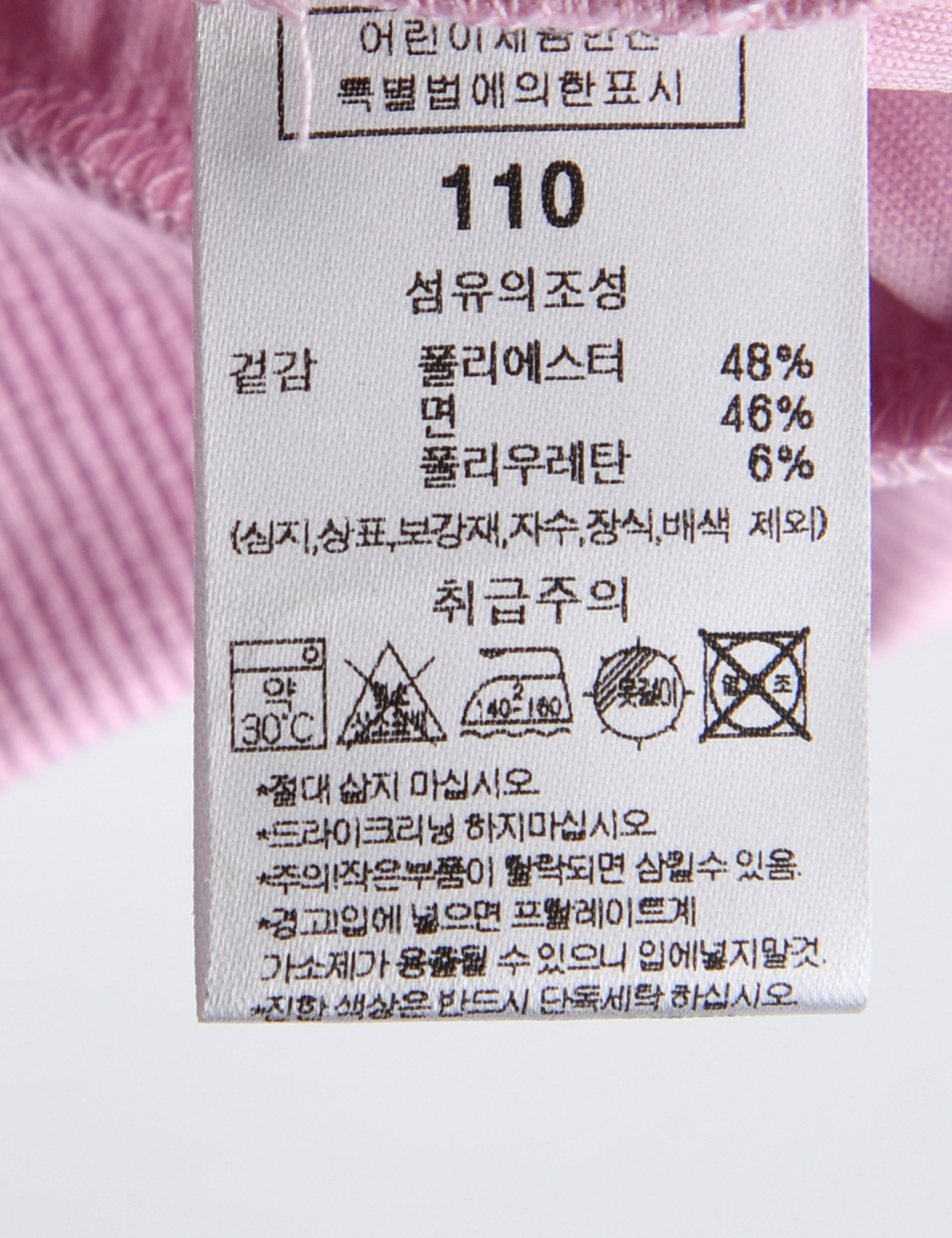 | 세탁방법 및 취급시 주의사항 | 본 세품은 손세탁 하십시오(케어라벨 참고) |