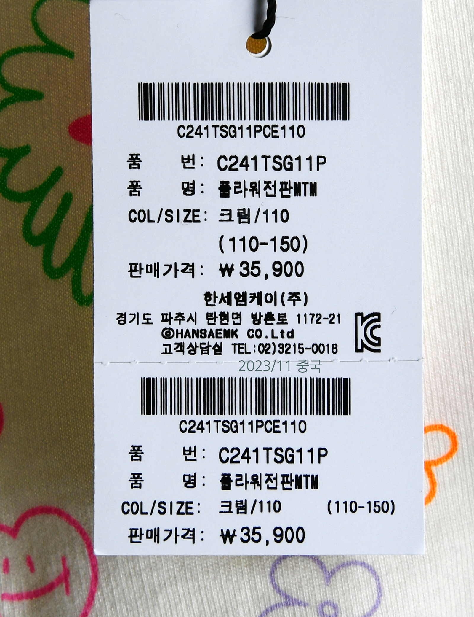 | 세탁방법 및 취급시 주의사항 | 본 세품은 손세탁 하십시오(케어라벨 참고) |