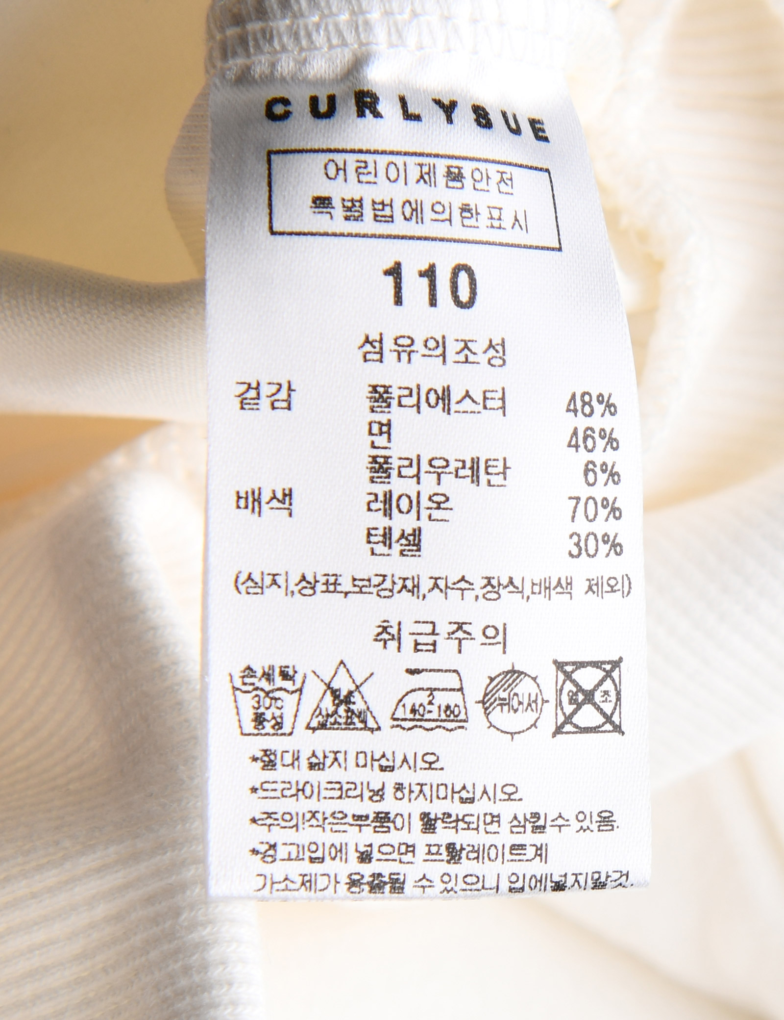 | 세탁방법 및 취급시 주의사항 | 본 세품은 손세탁 하십시오(케어라벨 참고) |