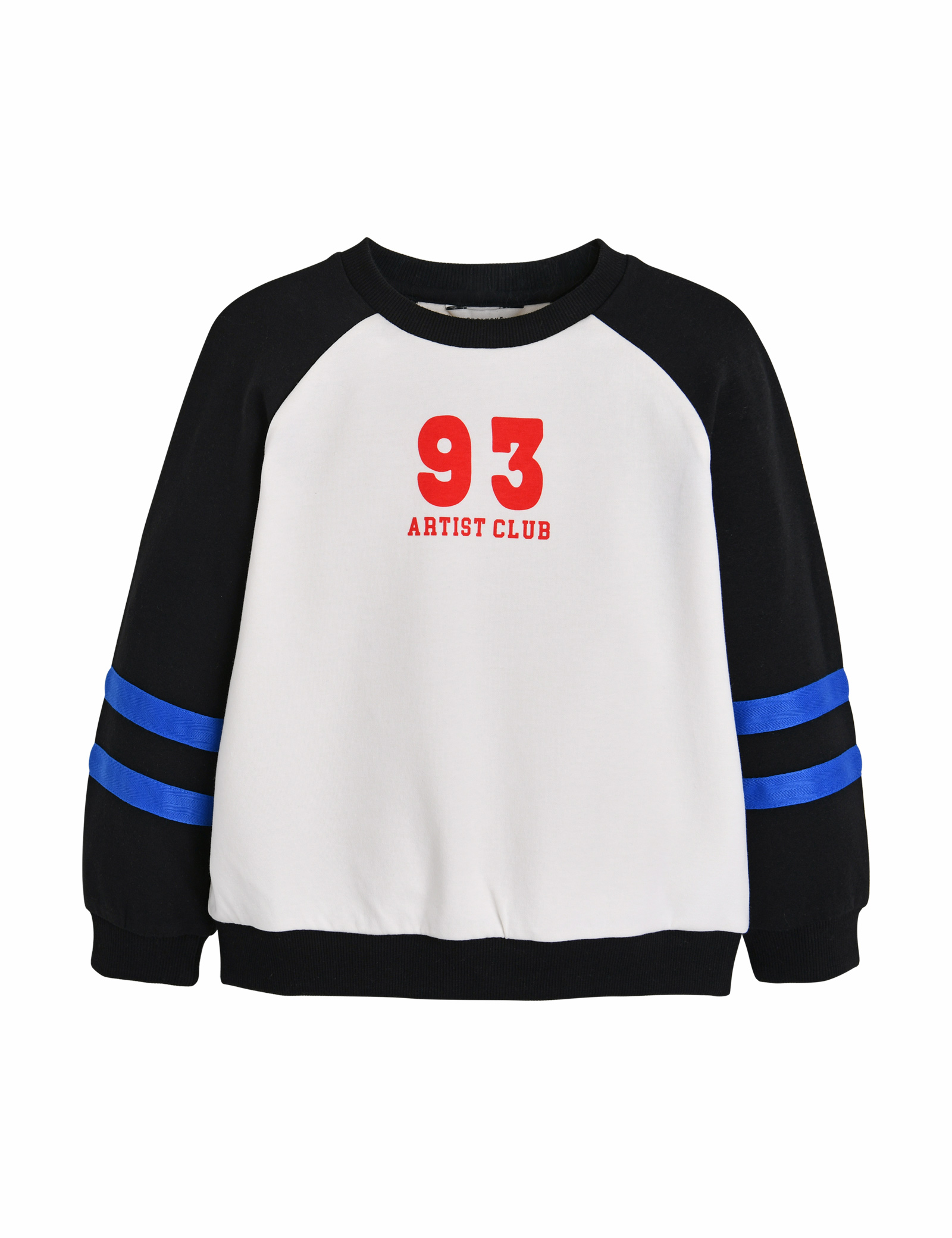 럭비 티 무드의 스포티함을 주는 소매 배색 맨투맨입니다. 소매 테이프 배색감 을 주었고 앞 판에 숫자 레터링을 이용 하여 포인트를 주었습니다. 우븐 팬츠와 의 코디가 돋보이는 아이템입니다.