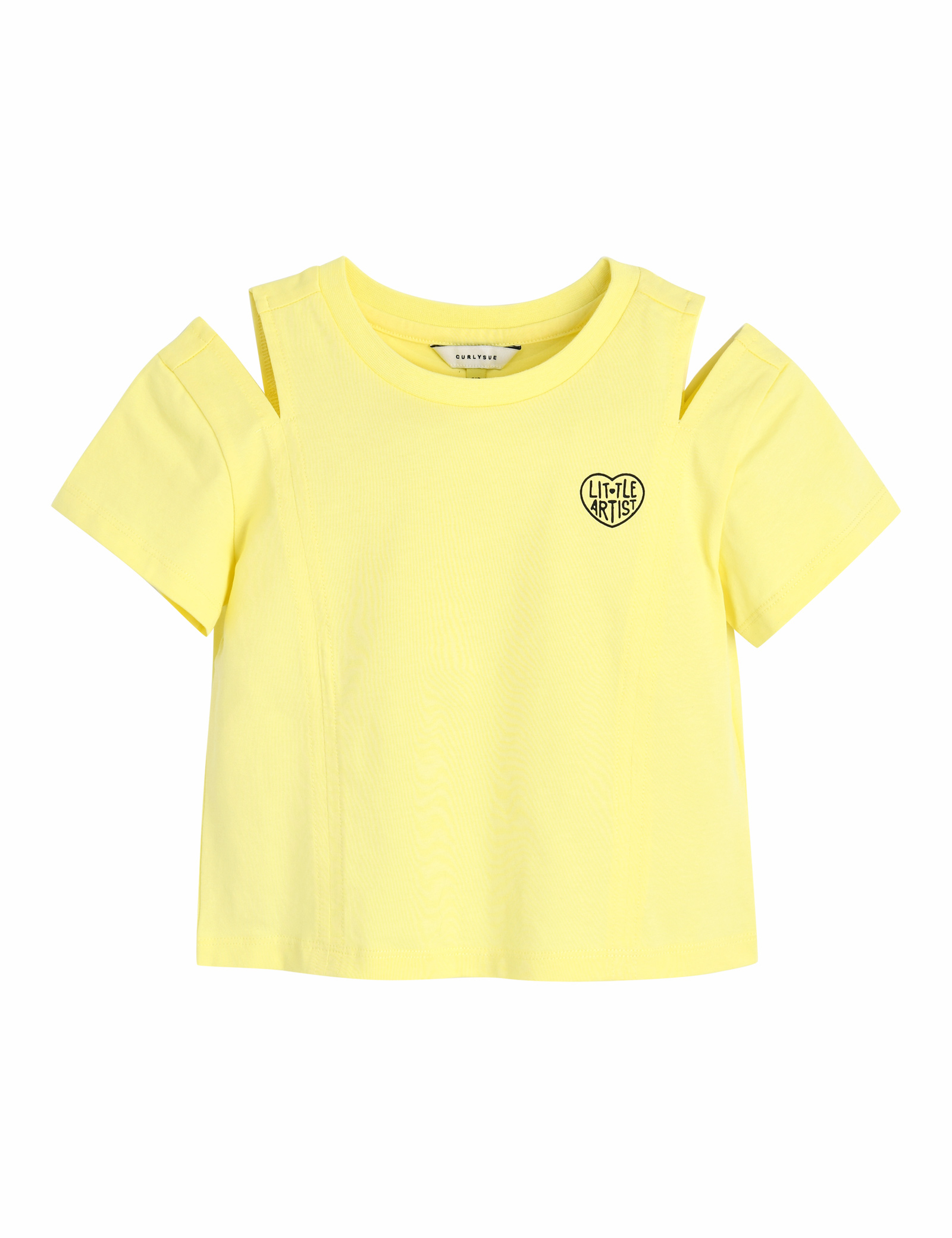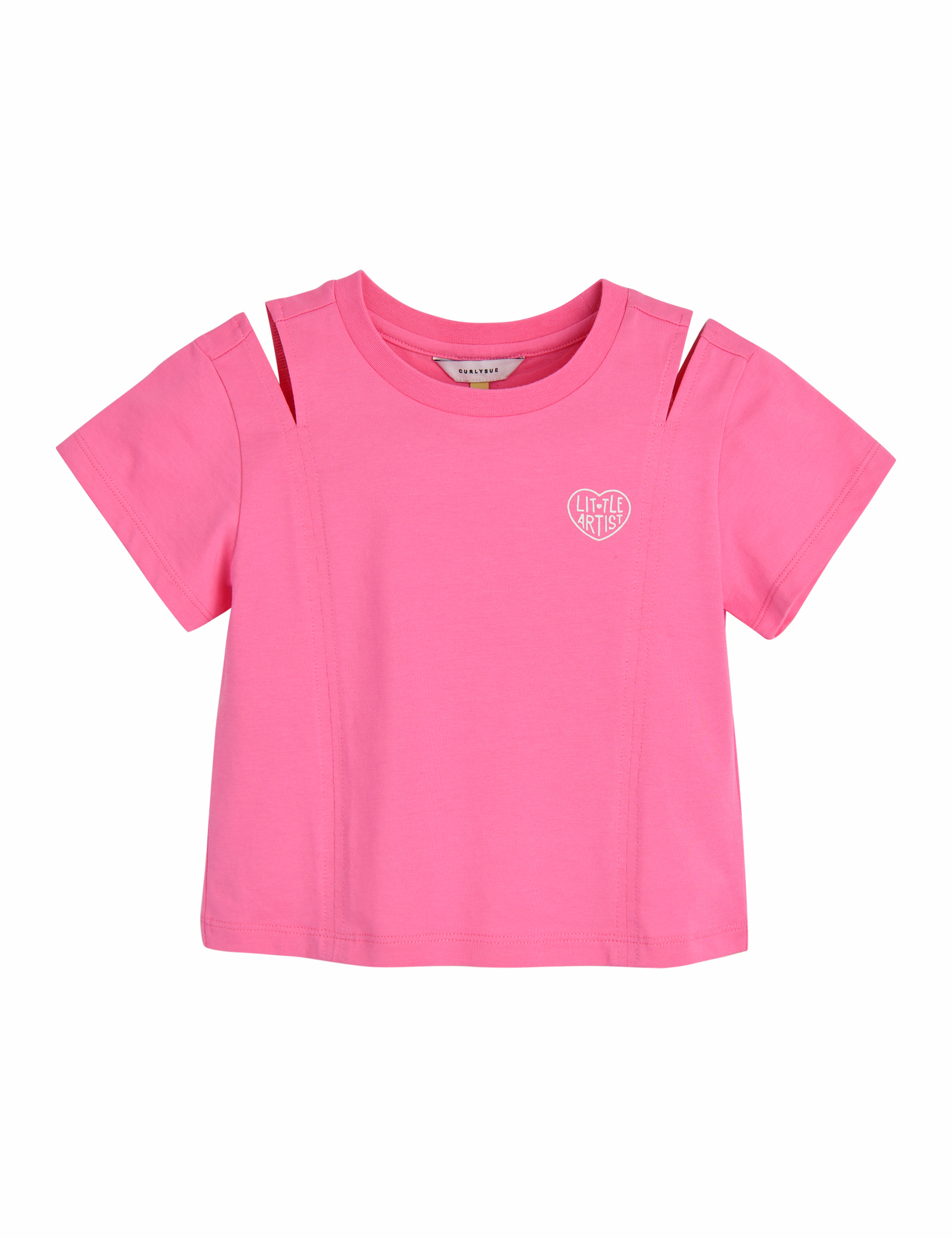 팡팡 튀는 컬러감에 어깨 트임이 포인트로 들어간 티셔츠입니다. 터치감이 좋은원단을 사용하여 편하게 착용 가능합니다. 스커트, 팬츠 등 다양한 코디 연출이가능한 아이템입니다.