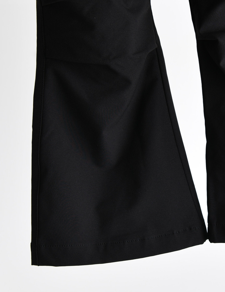 나일론 소재의 스판성이 좋은 화섬으로제작된 화섬 부츠컷 팬츠입니다. 허리밴딩과 무릎의 부담스럽지 않은 턱 디테일로 착용이 편안합니다.
