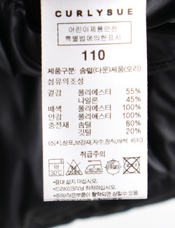 브랜드 홈 바로가기| 제품소재 | (겉감)폴리에스터55%,나일론45%(배색/안감)폴리에스터100%(충전재)솜털80%,깃털20% |