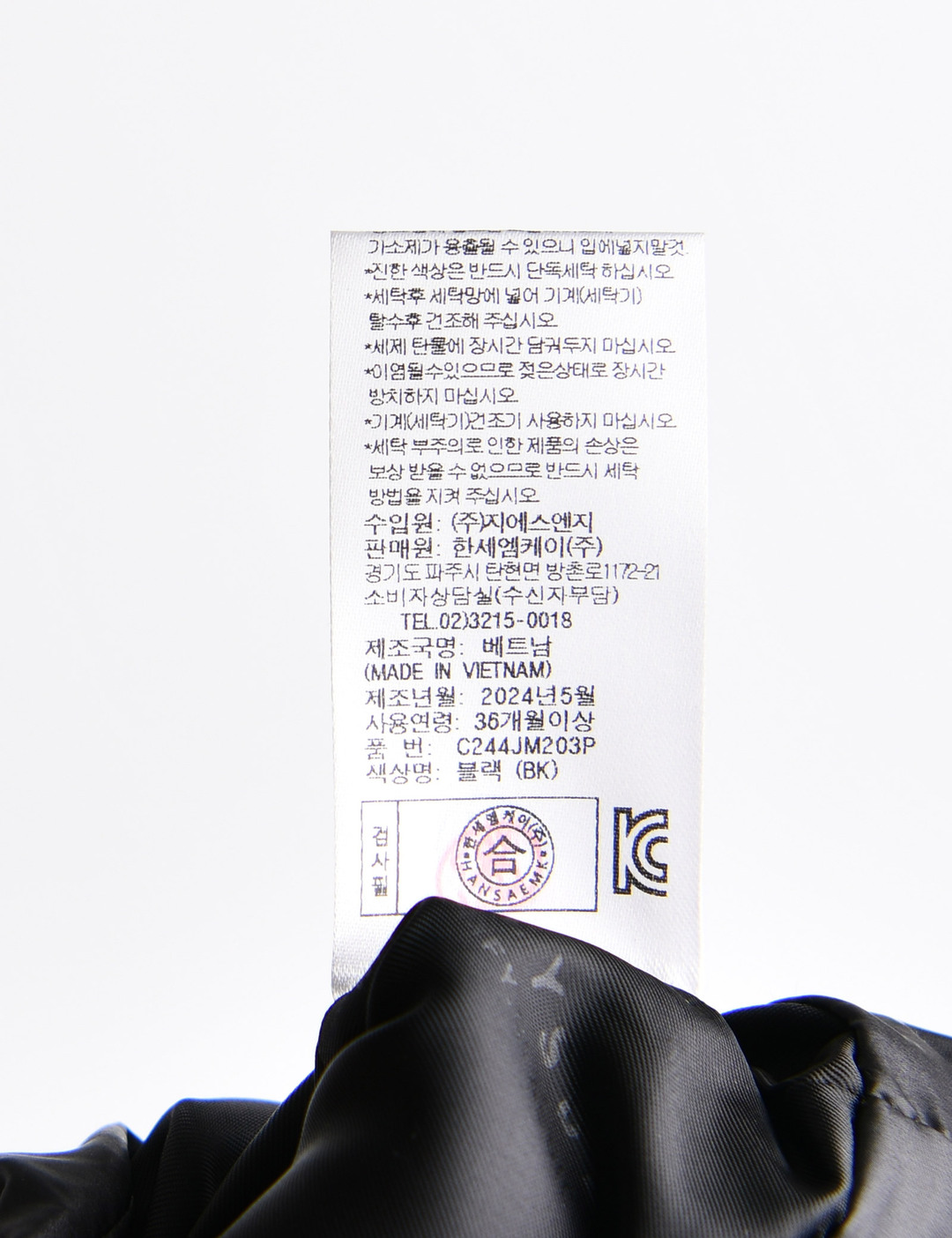 | 세탁방법 및 취급시 주의사항 | 본 세품은 손세탁 하십시오(케어라벨 참고) |