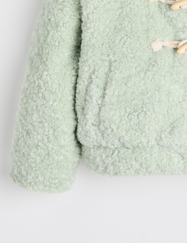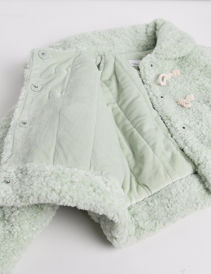 덤블 원단을 사용한 크랍 기장의 자켓입니다. 몸판에 얇은 플리스 안감을 사용하여 보온성을 높여주었습니다. 토글 단추 포인트로 귀여운 요소를 넣어 주었습니다. 소프트한 컬러감으로 데님과 스커트 코디에 잘 어울립니다.