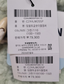 | 세탁방법 및 취급시 주의사항 | 본 세품은 손세탁 하십시오(케어라벨 참고) |