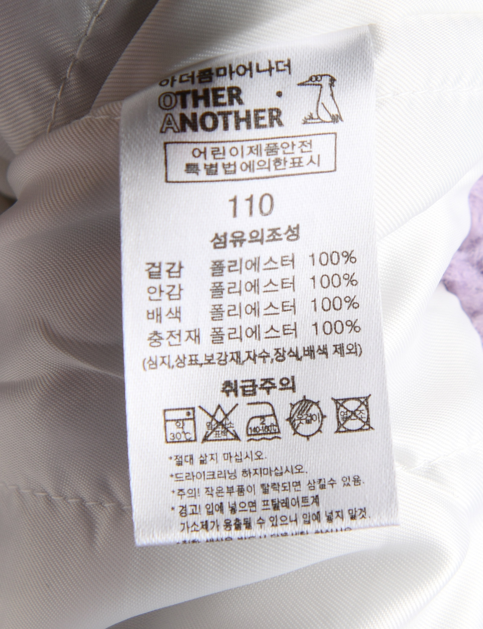 | 세탁방법 및 취급시 주의사항 | 본 세품은 손세탁 하십시오(케어라벨 참고) |