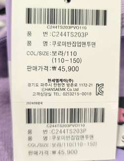 | 상품명 | [컬리수] 쿠로미반집업맨투맨 |