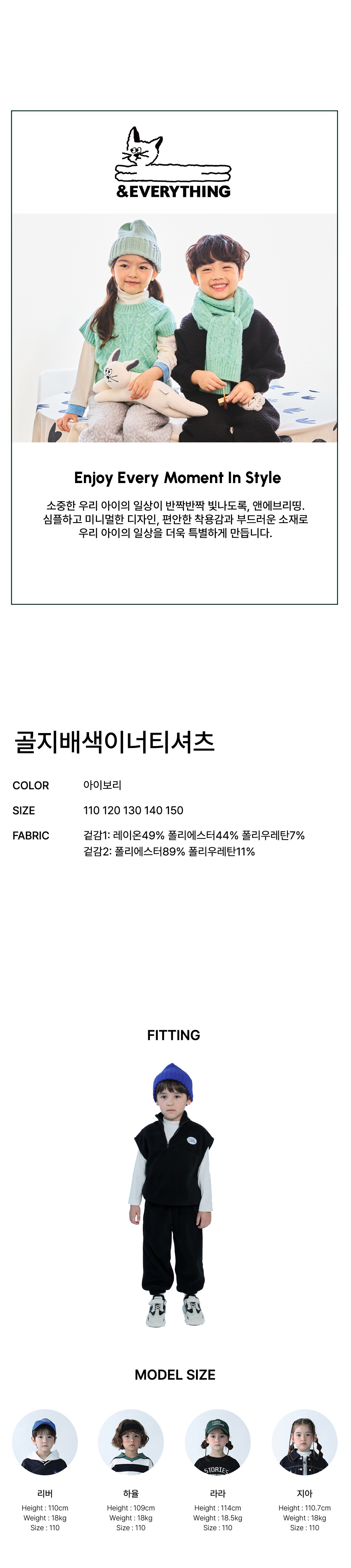 상품명 [앤에브리띵] 골지배색이너티셔츠