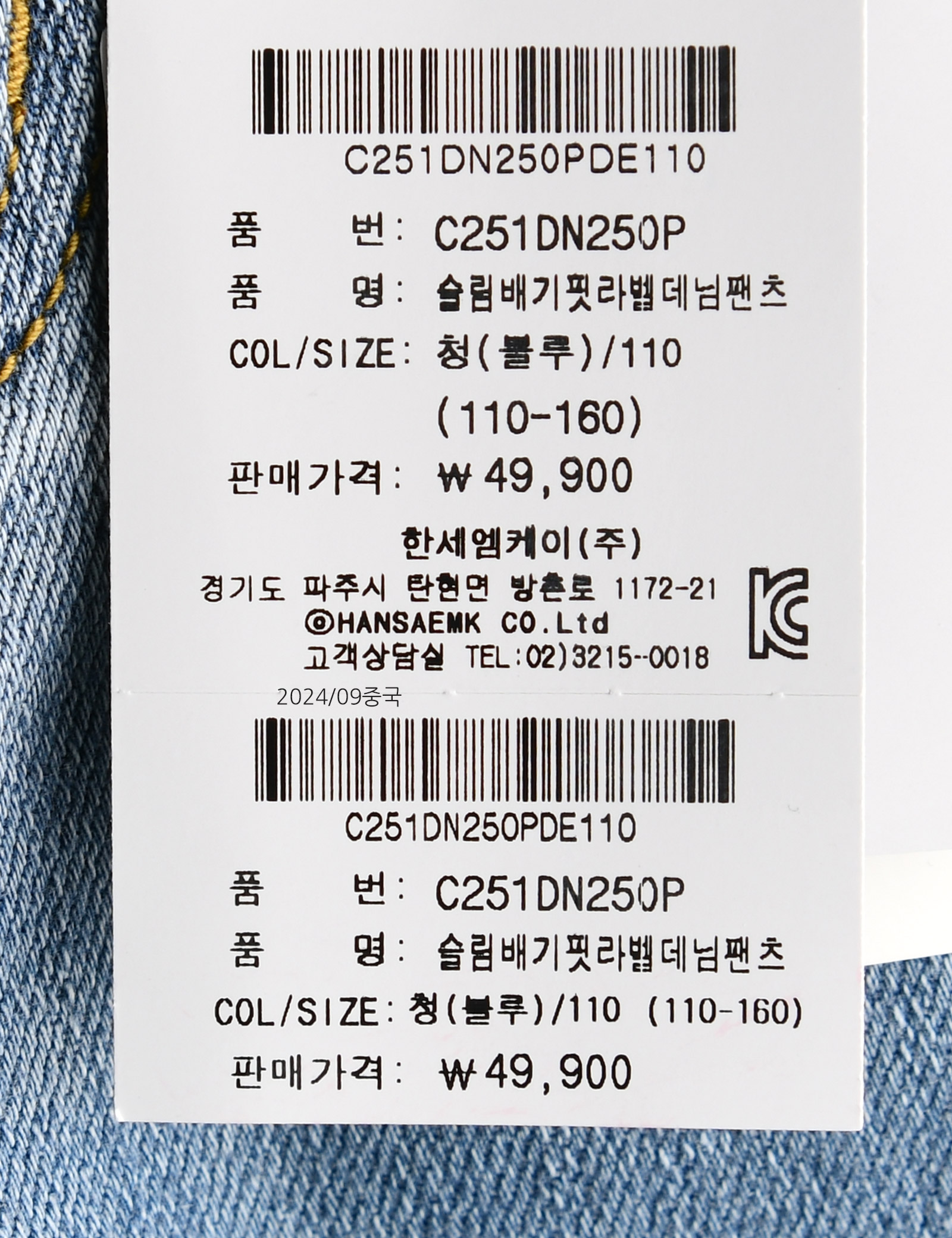 | 상품명 | [컬리수] 슬림배기핏라벨데님팬츠 |