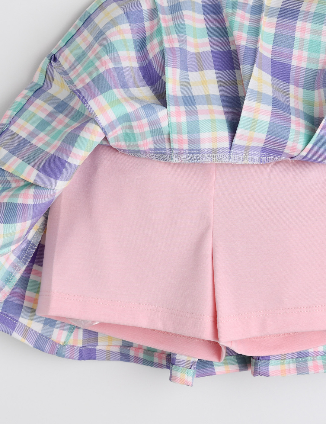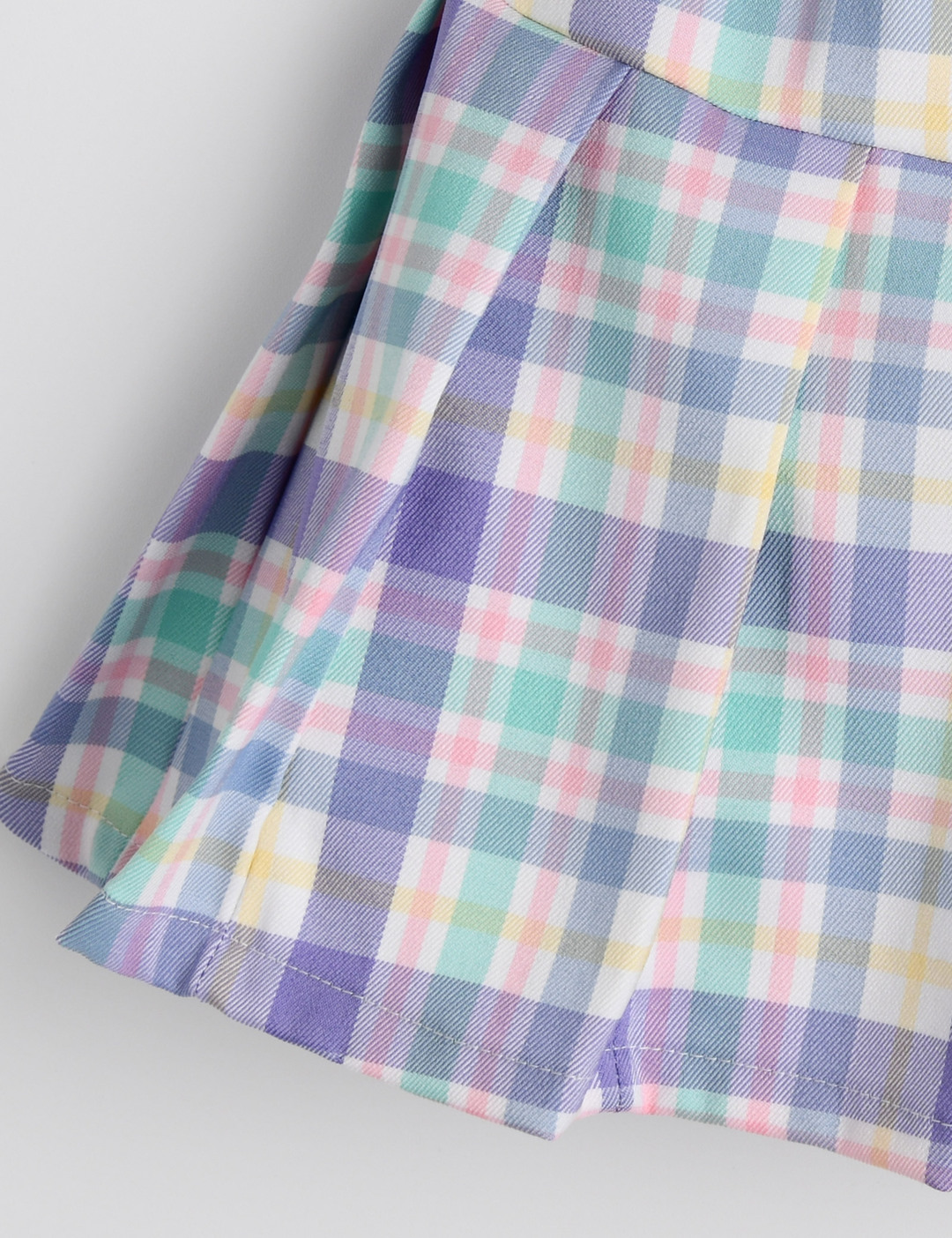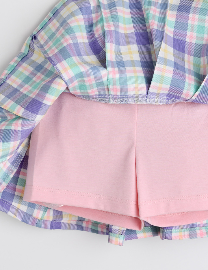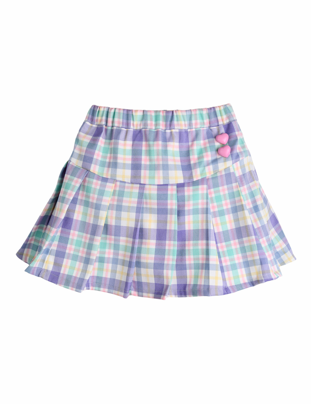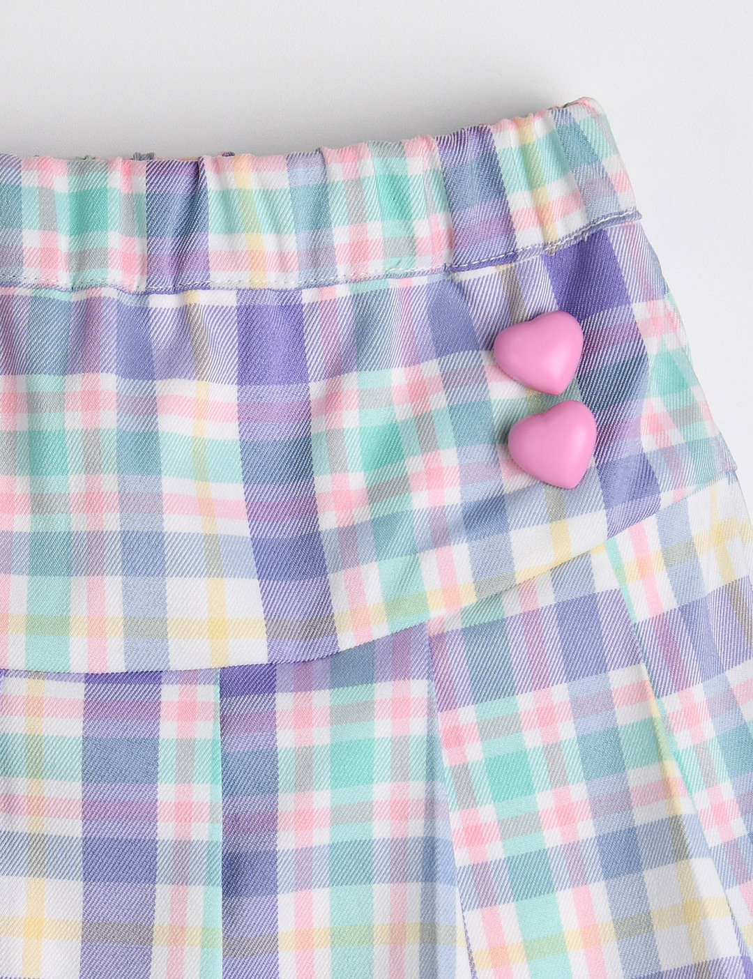 크색 하트 단추가 포인트인 체크 플리츠