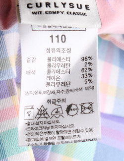 | 세탁방법 및 취급시 주의사항 | 본 세품은 손세탁 하십시오(케어라벨 참고) |