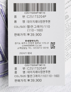 | 세탁방법 및 취급시 주의사항 | 본 세품은 손세탁 하십시오(케어라벨 참고) |