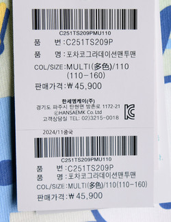 | 세탁방법 및 취급시 주의사항 | 본 세품은 손세탁 하십시오(케어라벨 참고) |