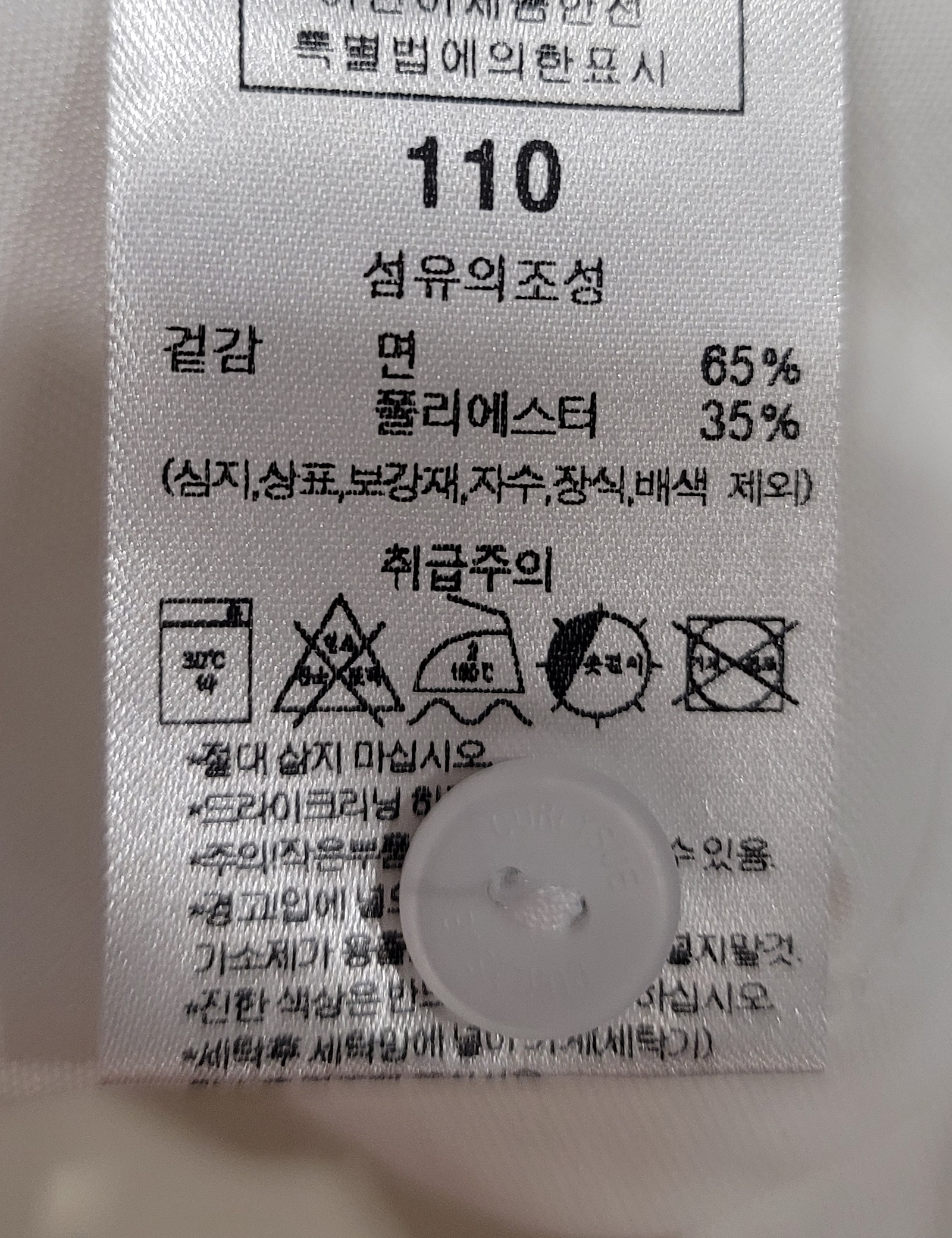 | 세탁방법 및 취급시 주의사항 | 본 세품은 손세탁 하십시오(케어라벨 참고) |