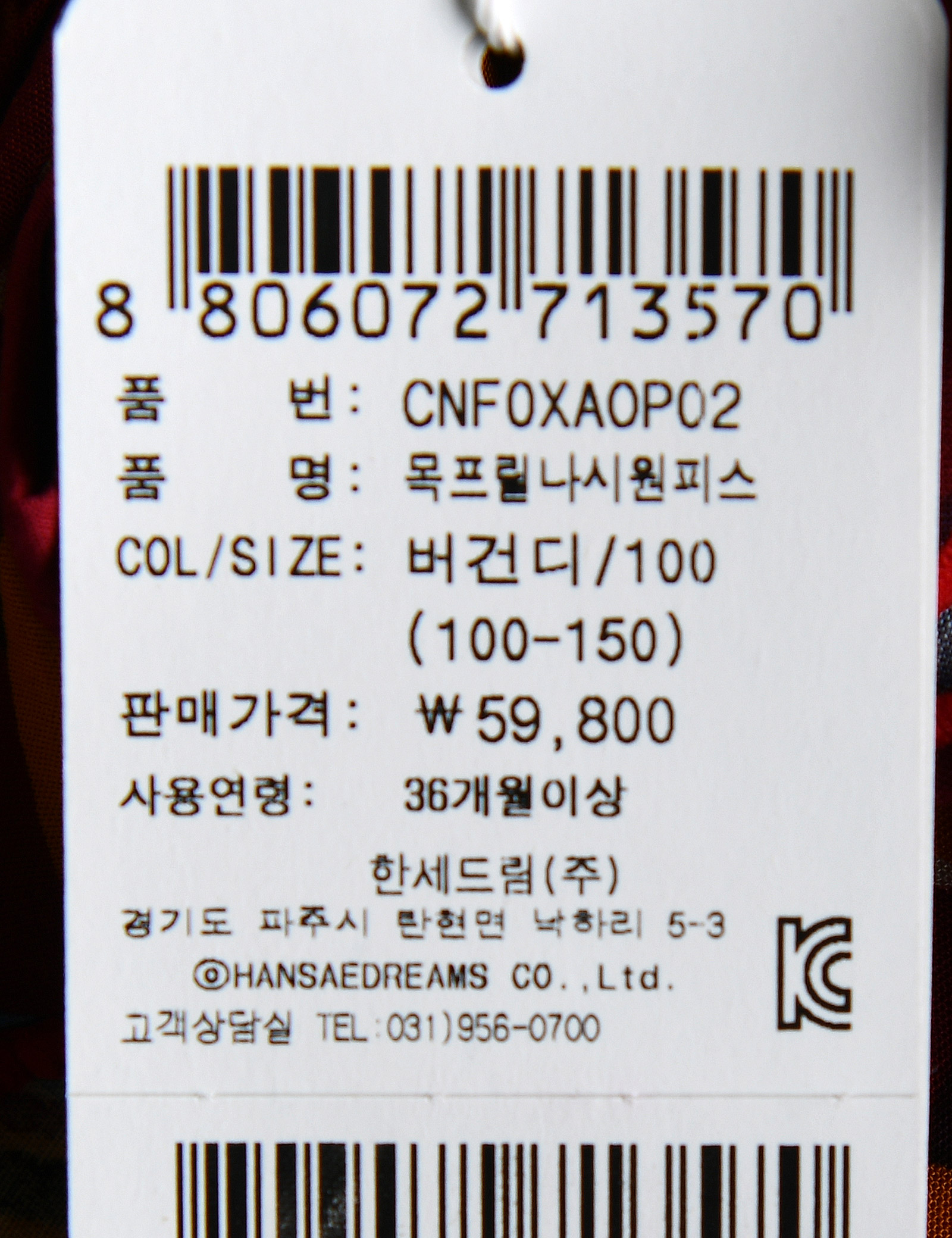 | 세탁방법 및 취급시 주의사항 | 케어라벨의 세탁방법대로 세탁해주세요. |