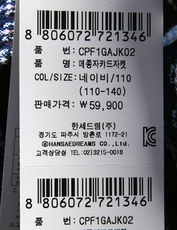 | 세탁방법 및 취급시 주의사항 | 케어라벨의 세탁방법대로 세탁해주세요. |