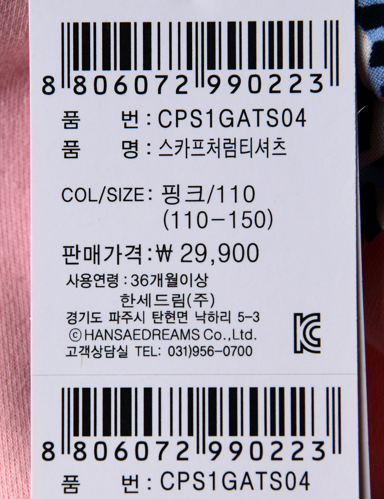 | 세탁방법 및 취급시 주의사항 | 케어라벨의 세탁방법대로 세탁해주세요. |