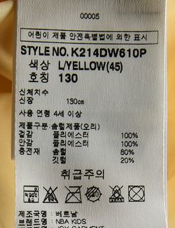 | 세탁방법 및 취급시 주의사항 | 본 세품은 손세탁 하십시오(케어라벨 참고) |