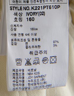 제품소재 (겉감)면97%,폴리우레탄3%