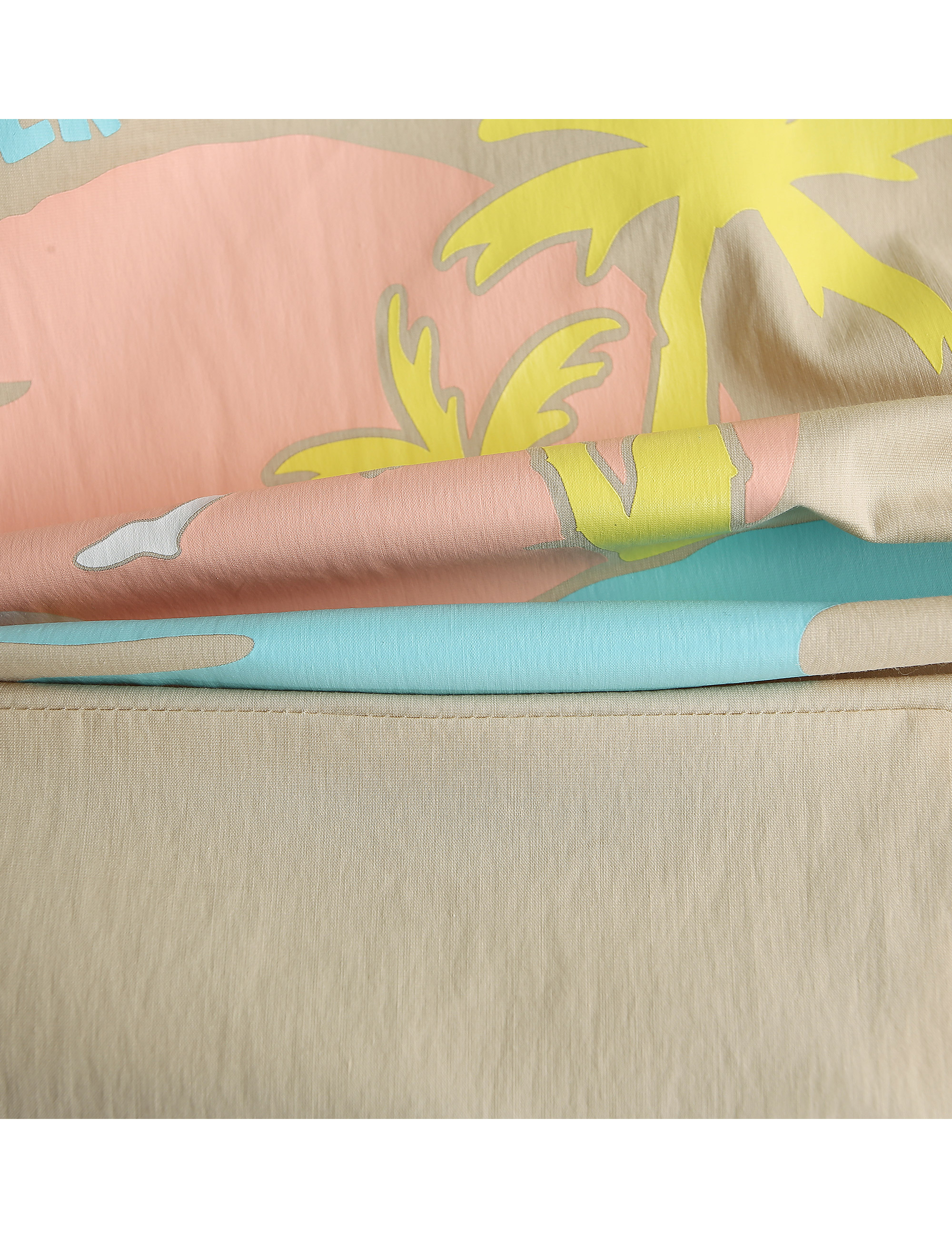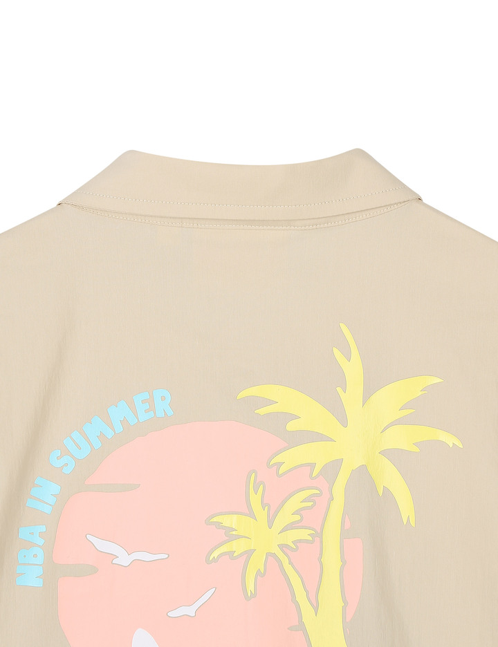-여름과 어울리는 가벼운 컬러감과 등판의 시원한 야자수 프린트가 포인트