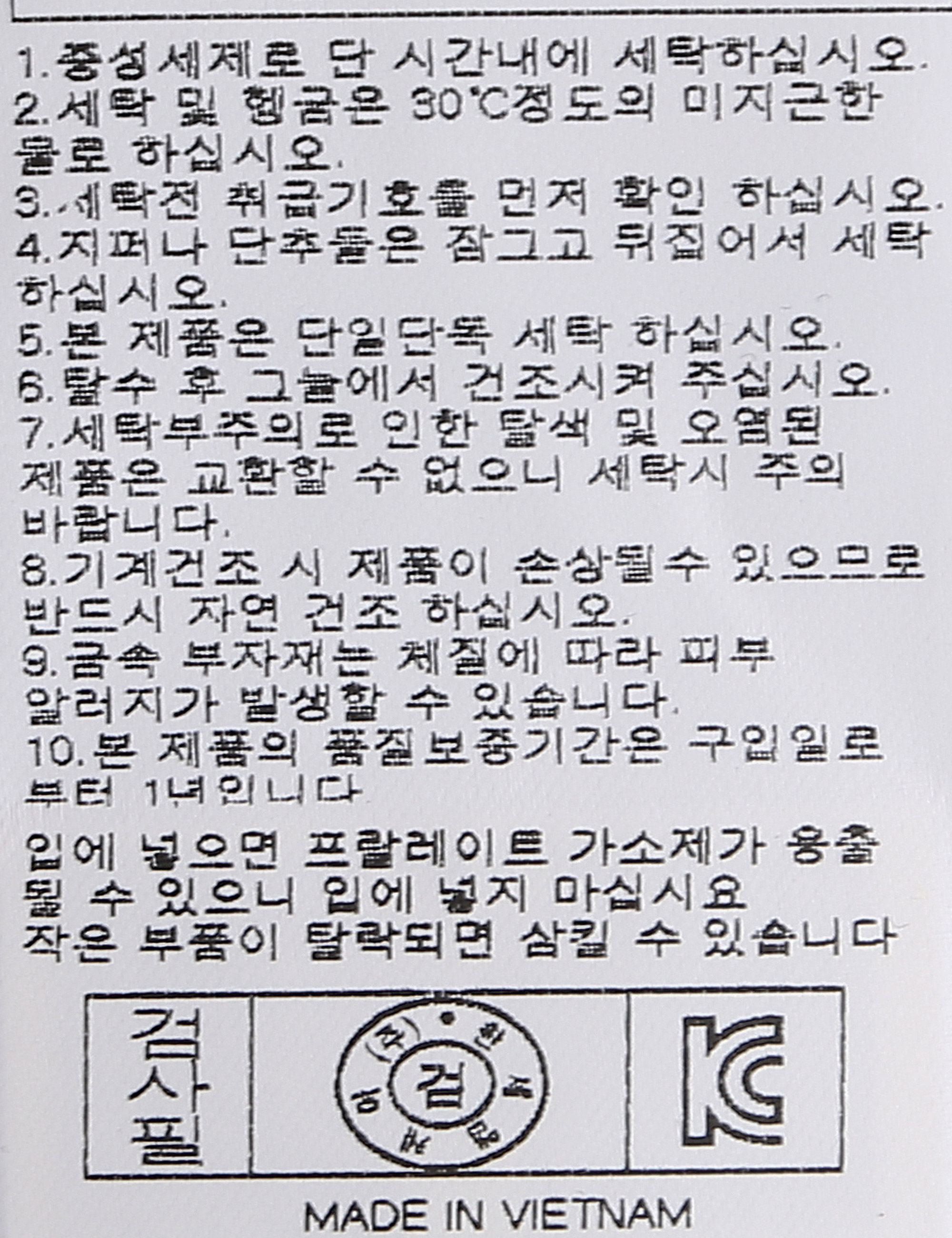 세탁방법 및 취급시 주의사항 중성세제로 단 시간내에 세탁하십시오.(케어라벨참고)