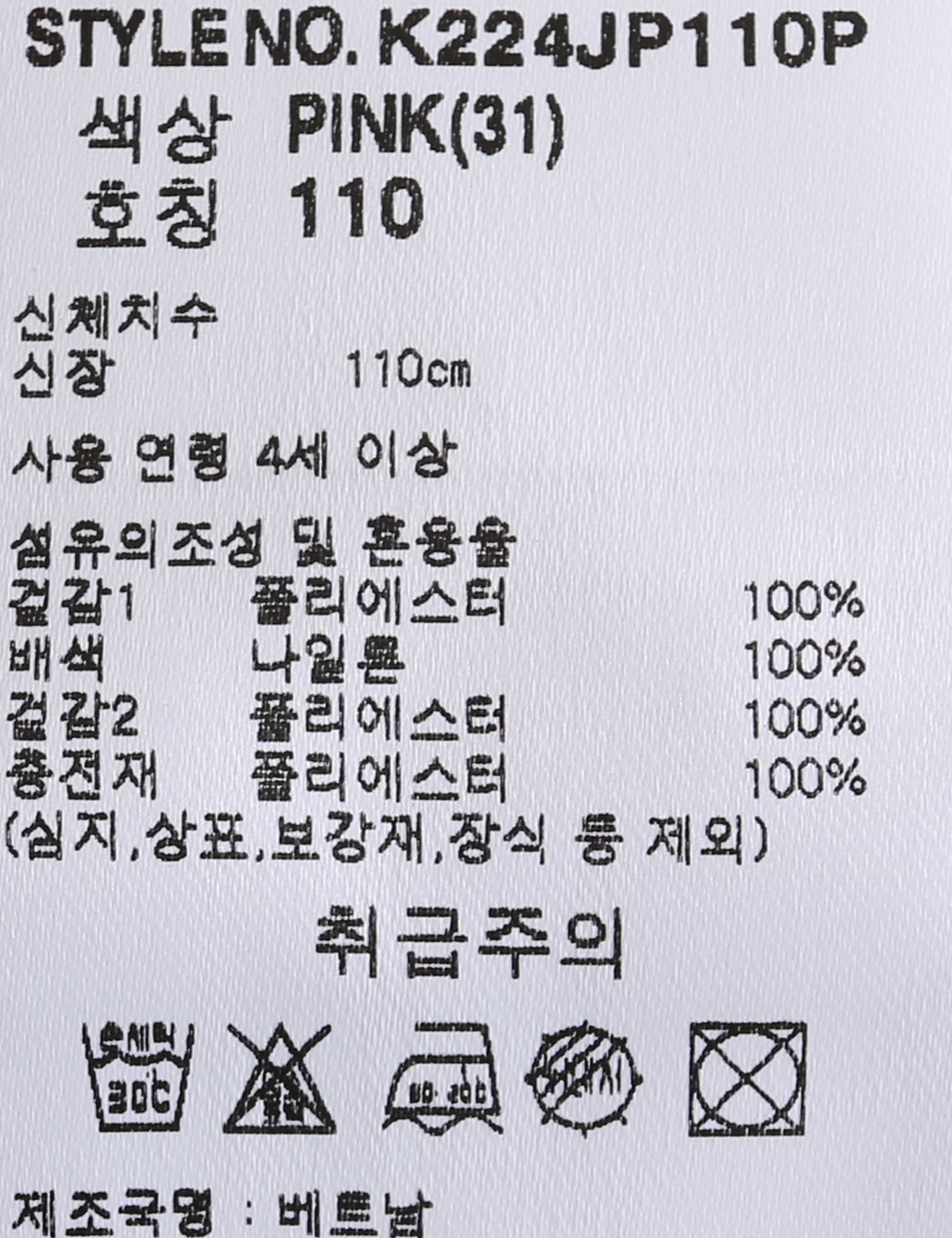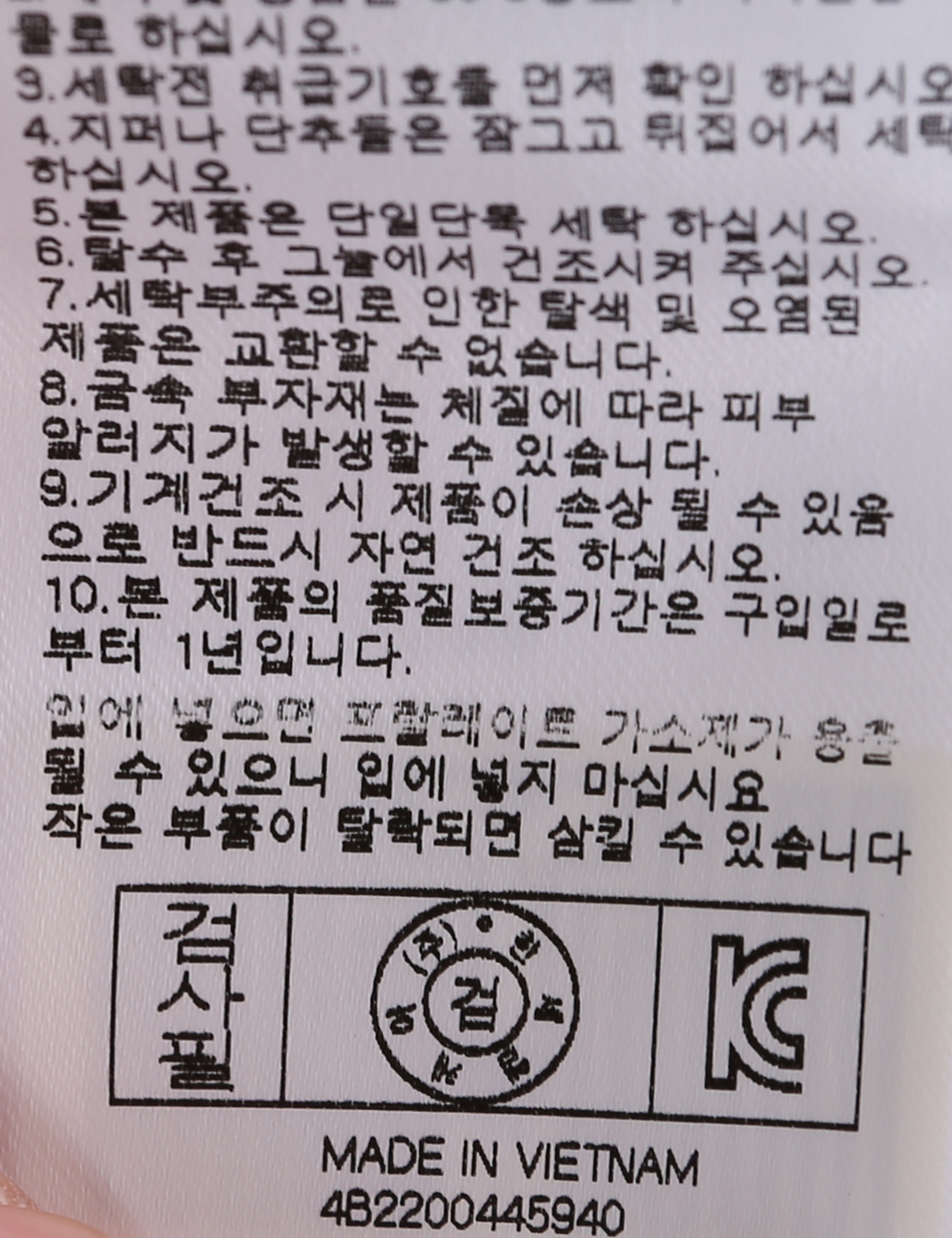 | 세탁방법 및 취급시 주의사항 | 본 제품은 손세탁 하십시오.(케어라벨참고) |