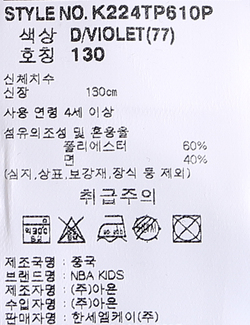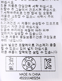 | 세탁방법 및 취급시 주의사항 | 중성세제로 단 시간내에 세탁하십시오.(케어라벨참고) |