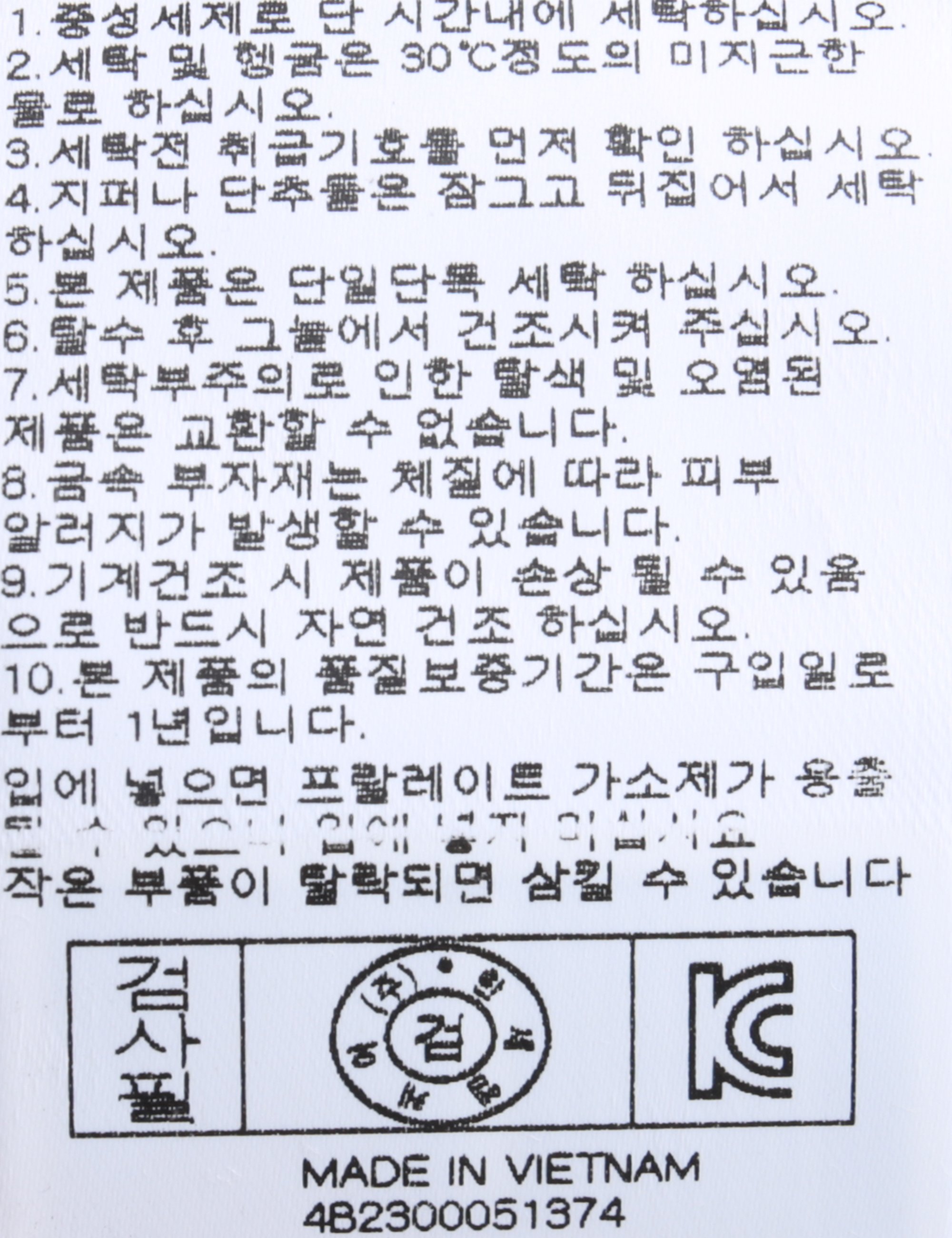 | 세탁방법 및 취급시 주의사항 | 본 제품은 손세탁 하십시오.(케어라벨참고) |
