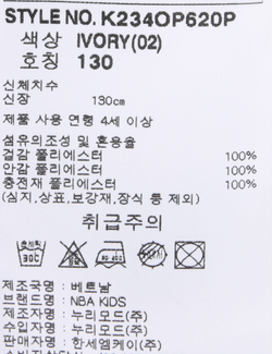 | 상품명 | NBA 하트 퀼팅 패딩 원피스(K234OP620P) |