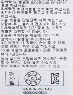 | 세탁방법 및 취급시 주의사항 | 본 제품은 손세탁 하십시오.(케어라벨참고) |