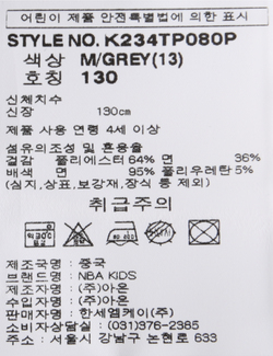 브랜드 홈 바로가기| 제품소재 | [겉감]폴리에스터64% 면36% [배색]면95% 폴리우레탄5% |