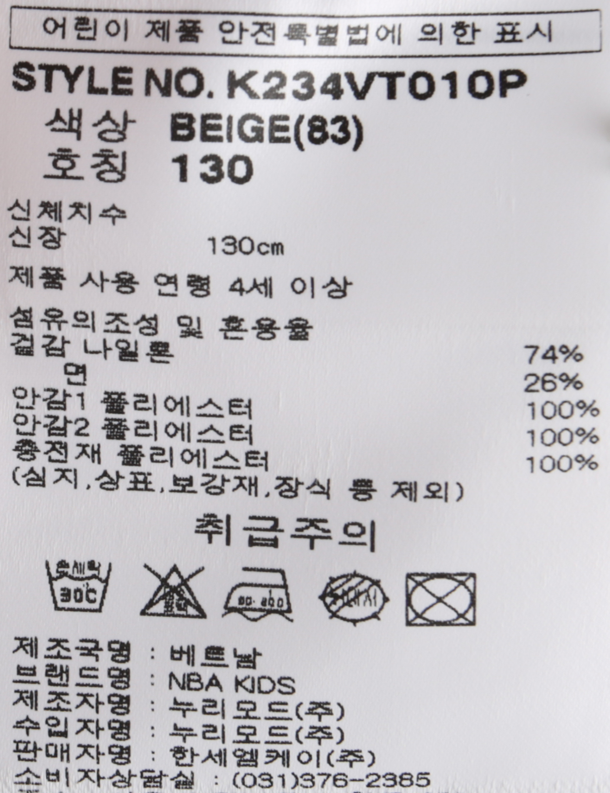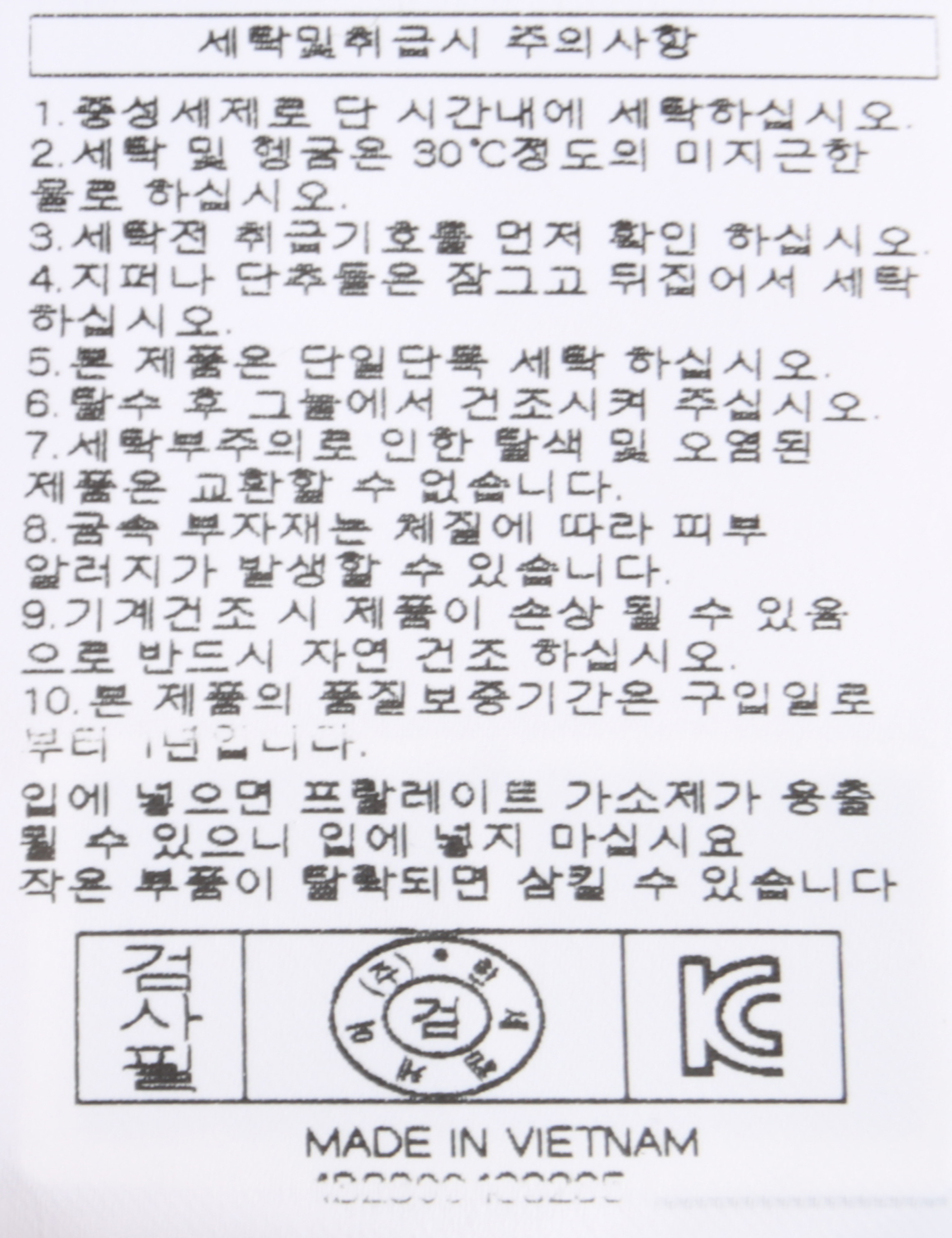 | 세탁방법 및 취급시 주의사항 | 본 제품은 손세탁 하십시오.(케어라벨참고) |