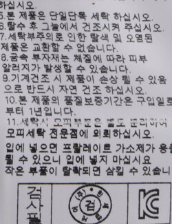 세탁방법 및 취급시 주의사항 본 제품은 손세탁 하십시오.(케어라벨참고)