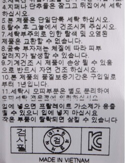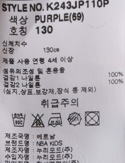 | 세탁방법 및 취급시 주의사항 | 본 제품은 손세탁 하십시오.(케어라벨참고) |
