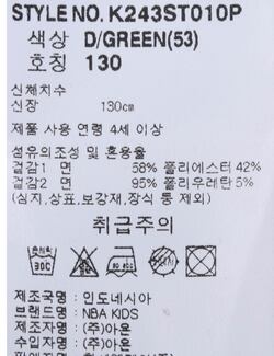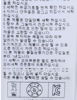 | 세탁방법 및 취급시 주의사항 | 본 제품은 손세탁 하십시오.(케어라벨참고) |