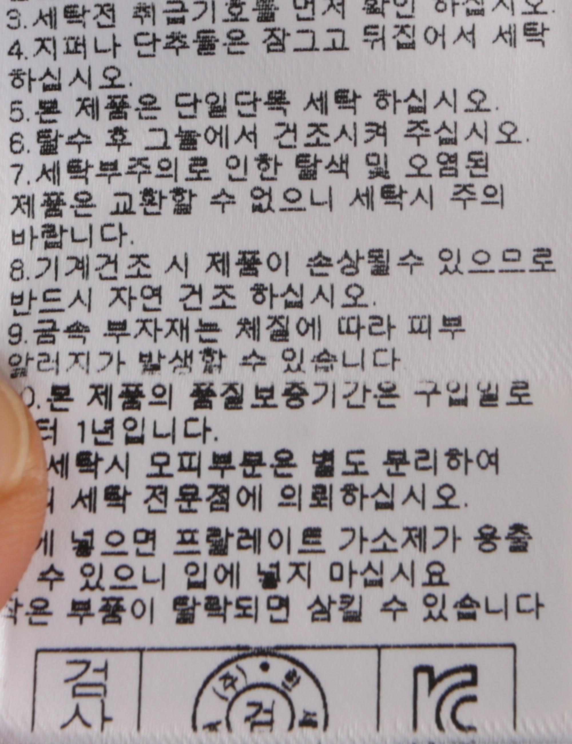 | 세탁방법 및 취급시 주의사항 | 본 제품은 손세탁 하십시오.(케어라벨참고) |