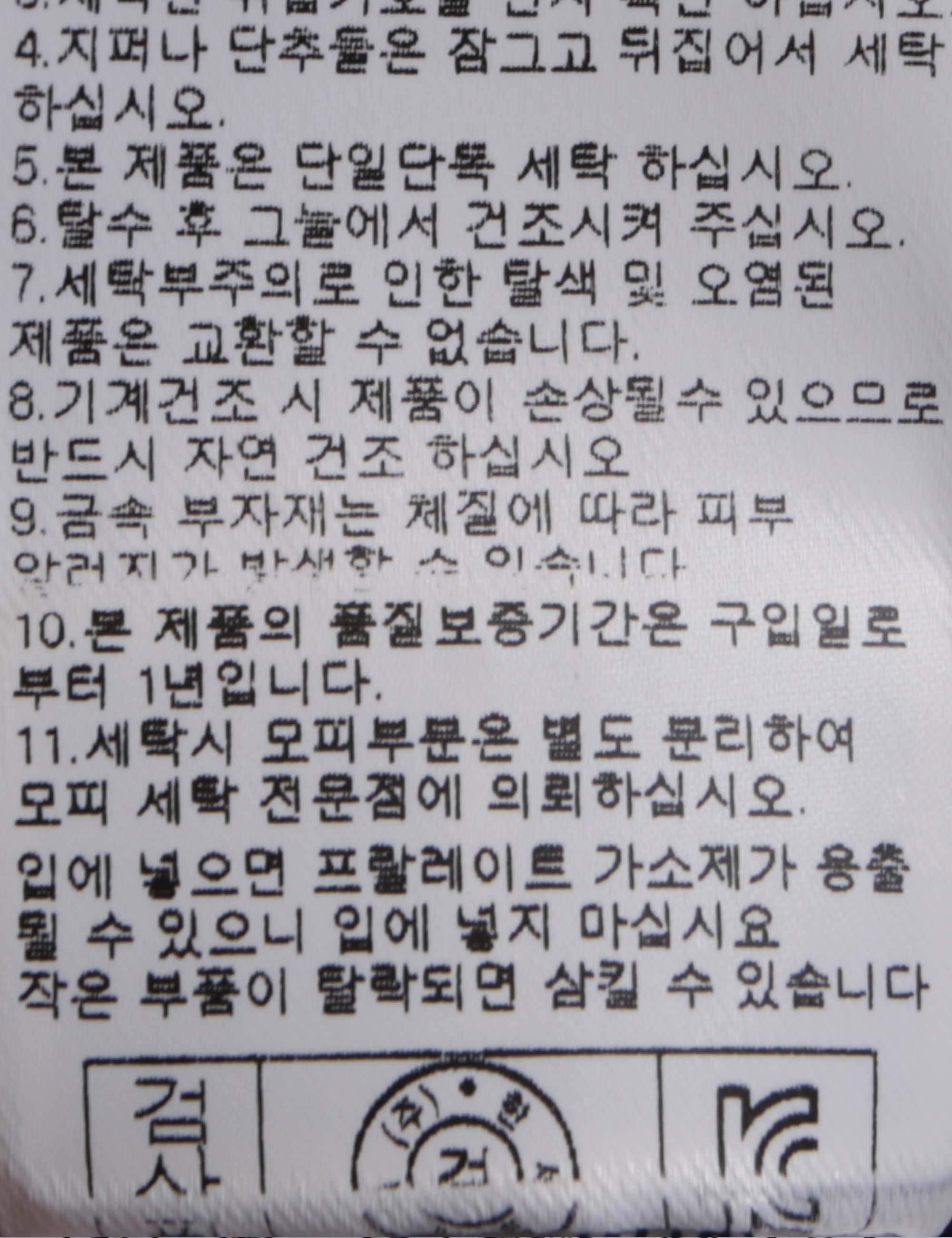 | 세탁방법 및 취급시 주의사항 | 본 제품은 손세탁 하십시오.(케어라벨참고) |