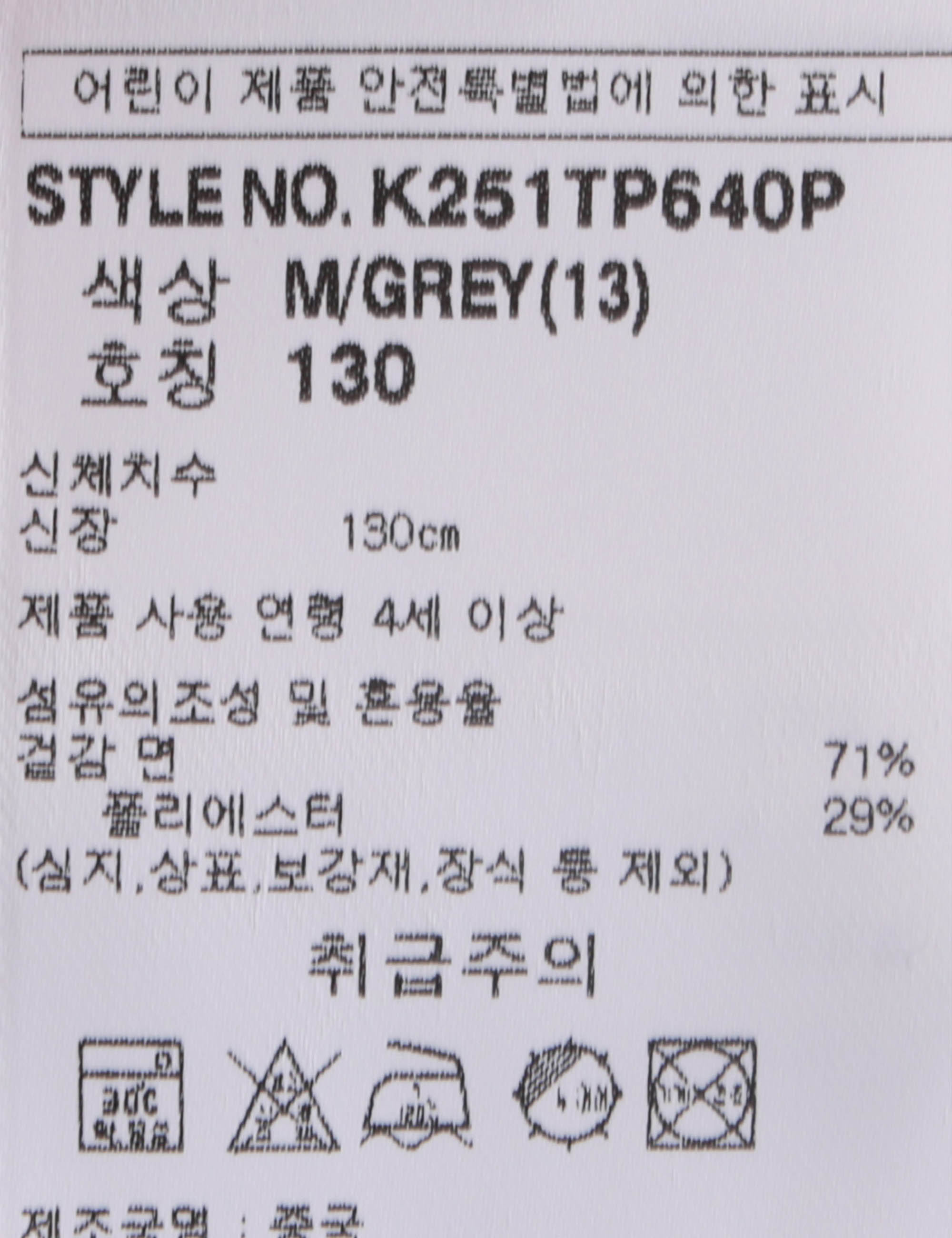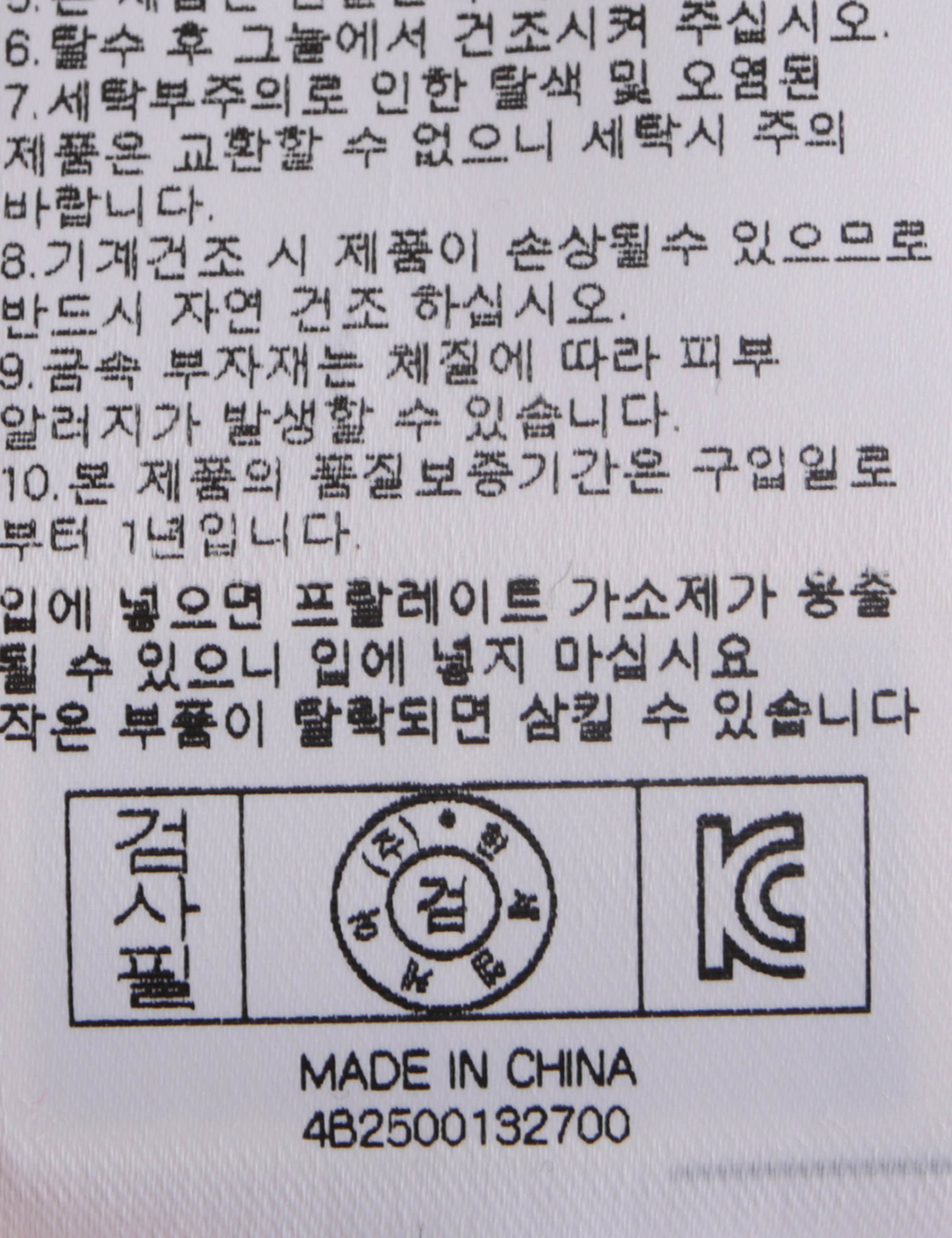 | 세탁방법 및 취급시 주의사항 | 중성세제로 단 시간내에 세탁하십시오.(케어라벨참고) |