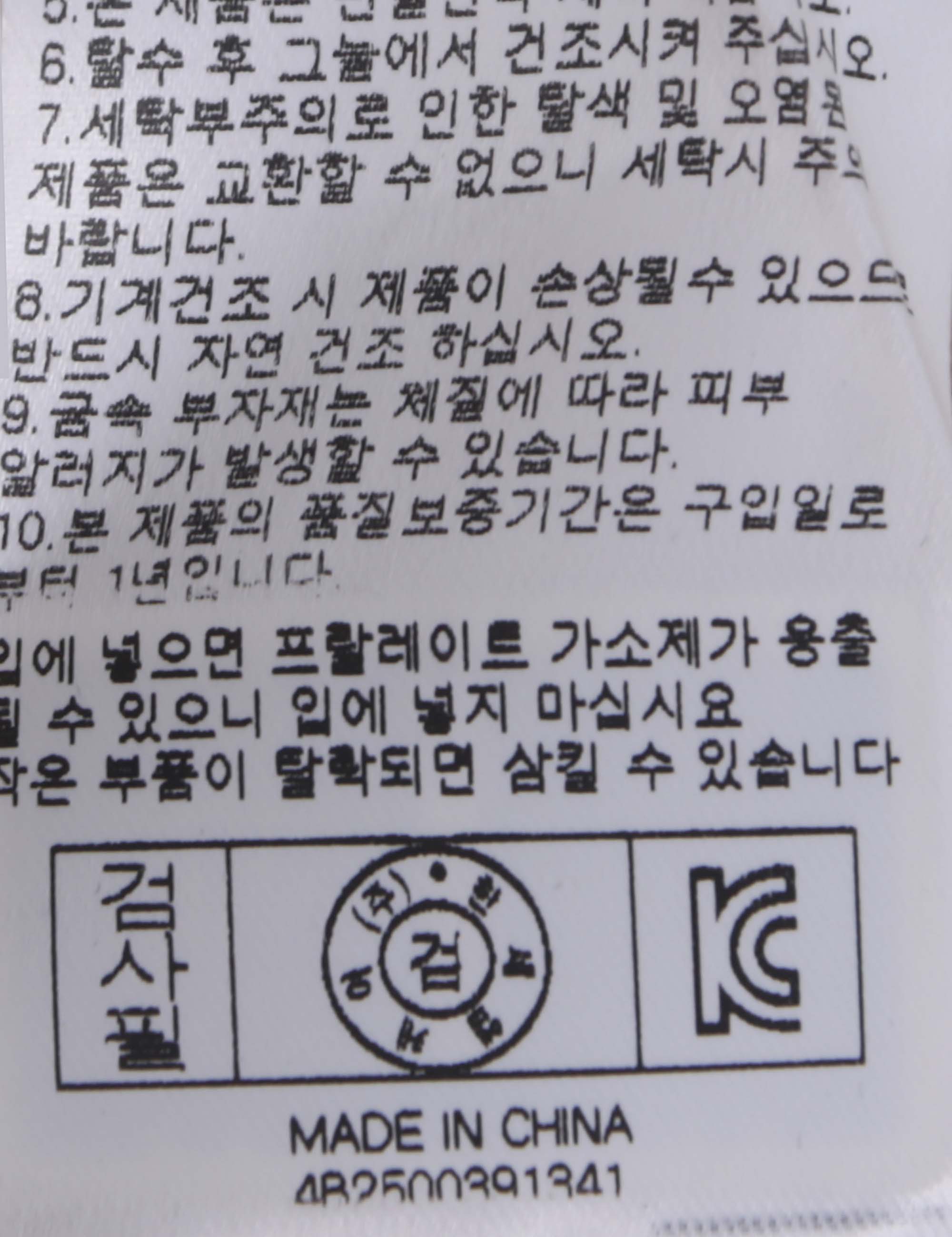 | 세탁방법 및 취급시 주의사항 | 중성세제로 단 시간내에 세탁하십시오.(케어라벨참고) |